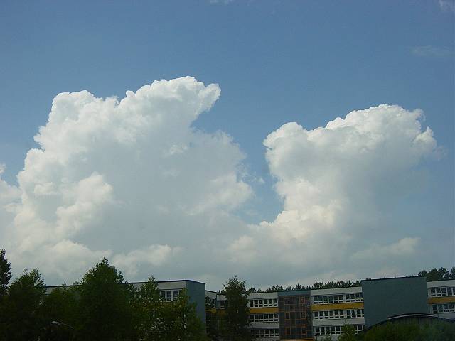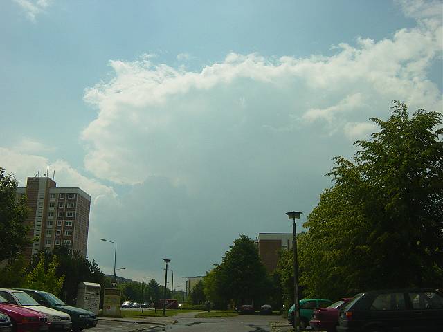 Am Nachmittag brodelte es nun kräftig weiter in der Atmosphäre. Überall schossen nun Cumulonimbus in die Höhe. Ich konnte sogar bei einer sich entwickelnden Zelle den Ansatz einer funnel-cloud erkennen, siehe das letzte Foto. |