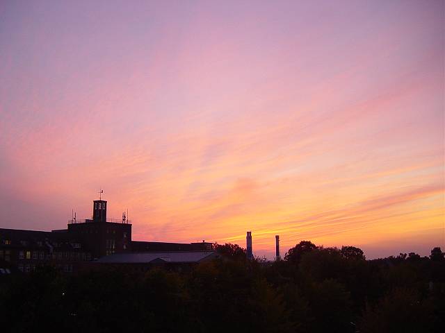 Das erste Bild entstand am Abend des 03.10.03. In der Nacht zum 04.10 bildete sich dichter Nebel, siehe das zweite Foto, das ich um 07:30 Uhr machte. Der Nebel lichtete sich sehr schnell und es sah eigentlich nach einem schönen Tag aus... |