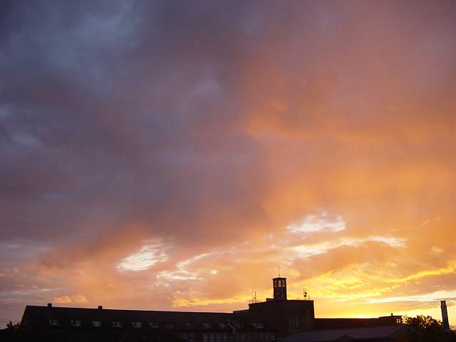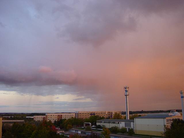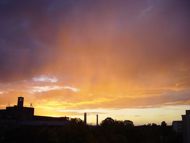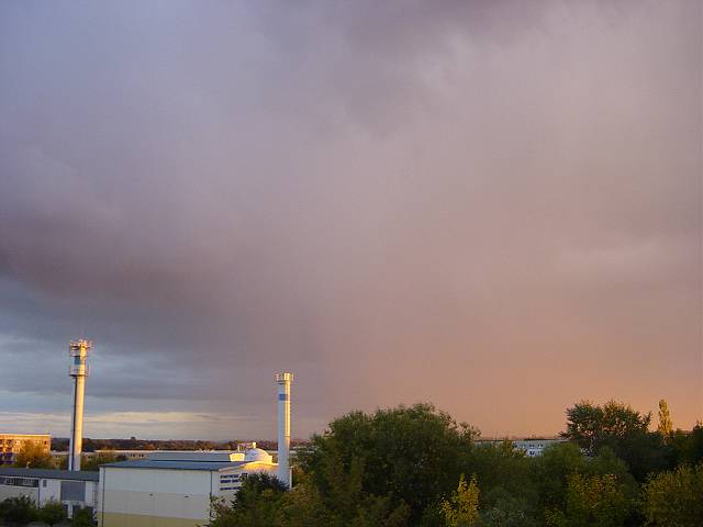 Gegen 18:30 Uhr riss die Wolkendecke von Westen her auf und das Licht der untergehenden Sonne bestrahlte die Fallstreifen eines abziehenden Schauers. Es gab hier noch einen stimmungsvollen Abendhimmel bis sich von Westen her die nächsten Schauer näherten. Dieses ungemütliche Wetter sollte nun noch bis zum 08.10.03 anhalten... |