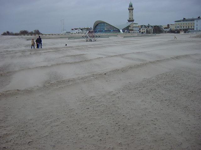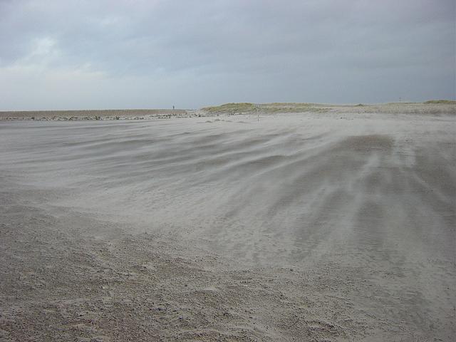 Der Wind hatte seit dem Vormittag ordentlich zugelegt und wehte im Mittel aus West bis Nordwest mit Windstärken von 8 bis 9. Am Strand wurde man gesandstrahlt.