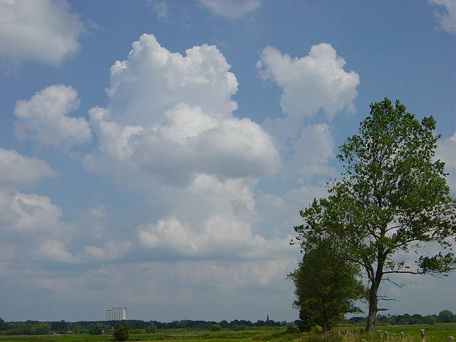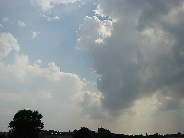 Die Temperatur stieg heute auf 28 °C. Um 14:00 Uhr machte ich die ersten beiden Fotos... Es begann schon gut zu quellen. So gegen 16:00 Uhr fuhr ich mit dem Fahrrad in Richtung Westen los und konzentrierte mich auf eine krasse Wolkenformation. Siehe die beiden unteren Fotos. |
