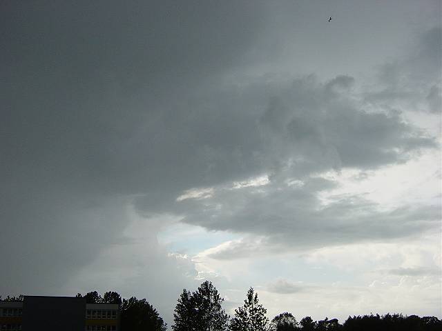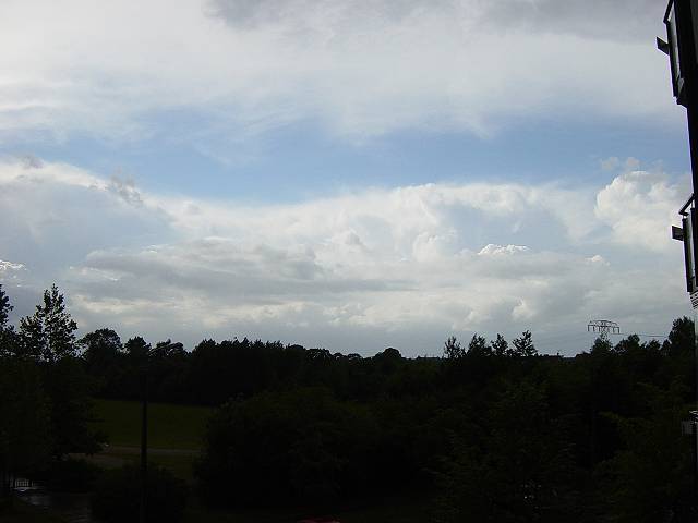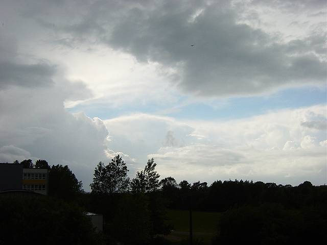 Auf der Rückseite dieser Zelle konnte ich sehr schön ausgeprägte Cumulus erkennen, die in den Eisschirm der Wolke emporstiegen, siehe das 2. Foto. Gegen 21:00 Uhr beruhigte sich das Geschehen, es gab aber in der Nacht noch weitere leichte Schauer und stürmischen Wind der Stärke 6 aus Nordwest. |