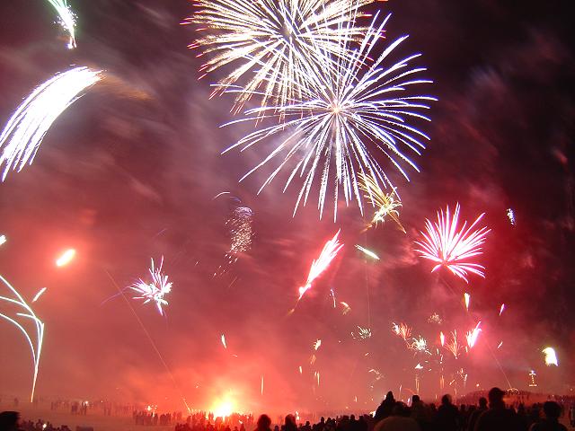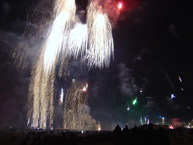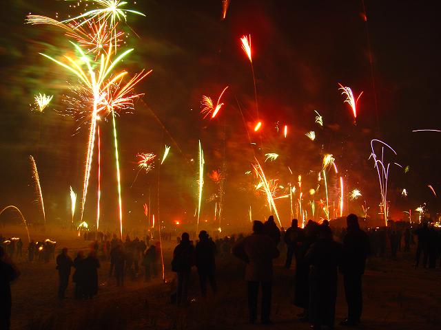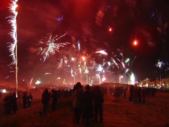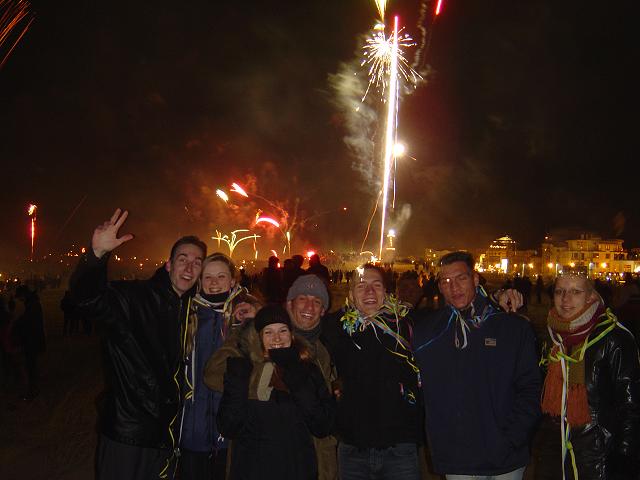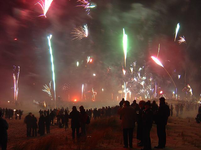 Wie fast jedes Jahr gingen wir um Mitternacht nach Warnemünde an den Strand, denn hier ist immer am meisten los. Die Temperatur lag bei -2 °C, doch weil fast kein Wind wehte, war es nicht so unangenehm kalt wie im Jahr 2002.