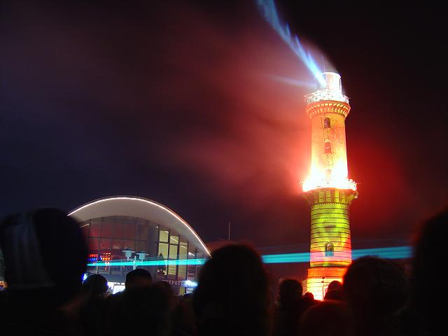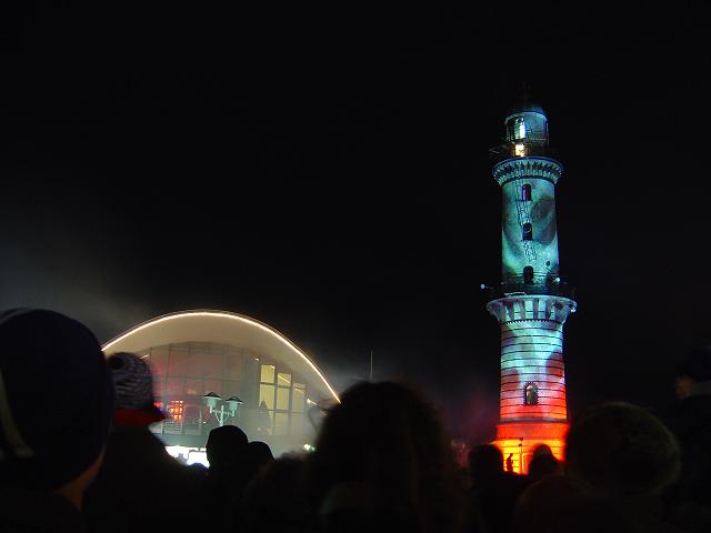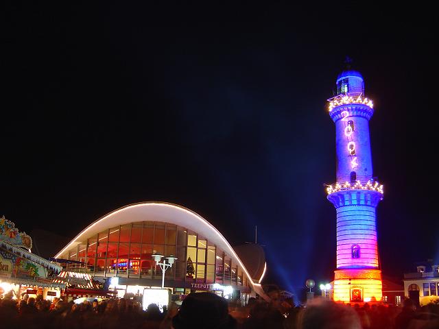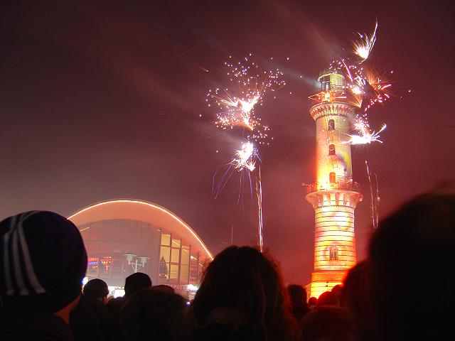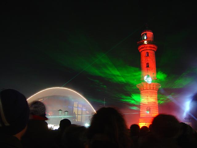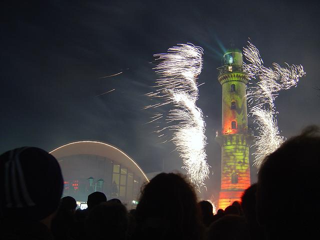Am 01.01.04 gab es um 19 Uhr in Warnemünde die Show "Leuchtturm in Flammen"... Schönes Schauspiel mit Feuerwerk, Musik und Lasershow. (Hat Antenne Mecklenburg-Vorpommern ja doch mal was Feines hingekriegt). Ich hab auch einen kleinen Videozusammenschnitt 1 MB wmv für Windows Mediaplayer hochgeladen. |