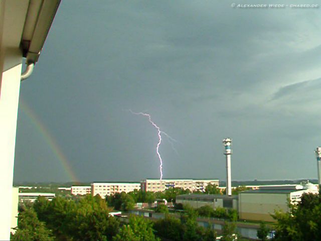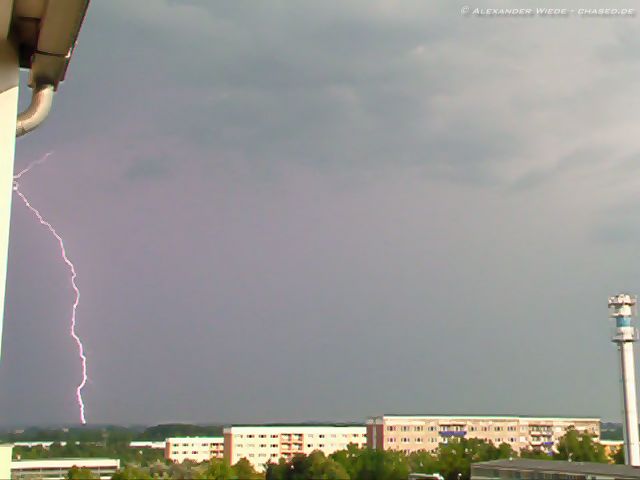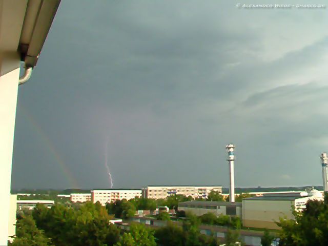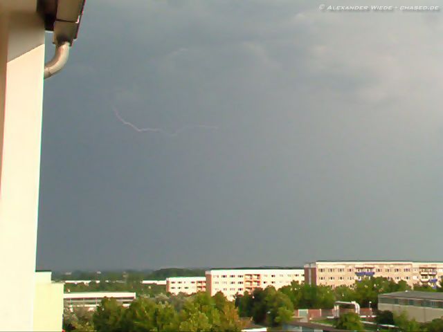 In Wismar konnte ich noch an der Rückseite des Gewitters ein paar Blitze aufnehmen. Siehe die 4 Videostandbilder. Das Gewitter zog nun unter Abschwächung Richtung Osten ab. Ca 40 km südlich von Wismar war das Unwetter am heftigsten. Nach dem Gewitter kühlte es sich kaum ab, die Temperatur lag immer noch bei 22 °C. |