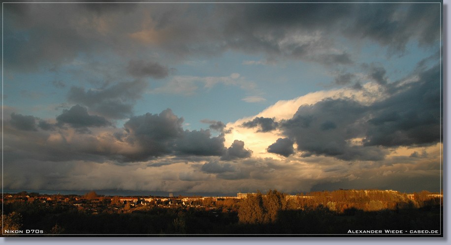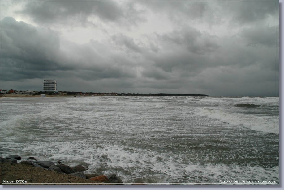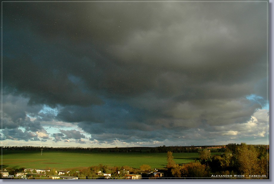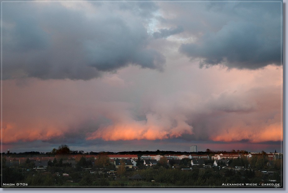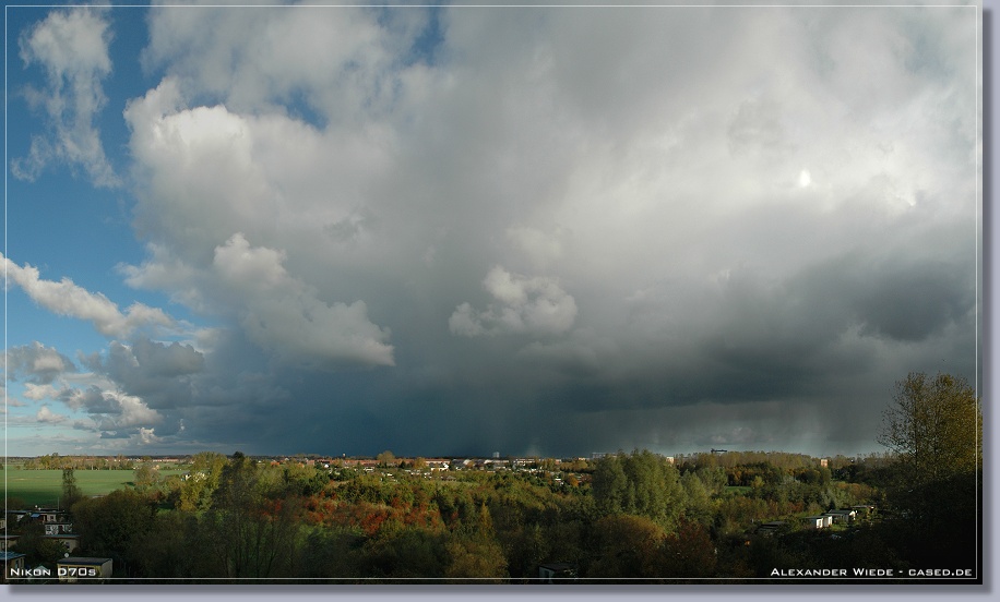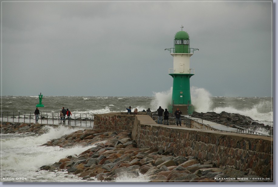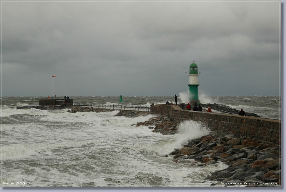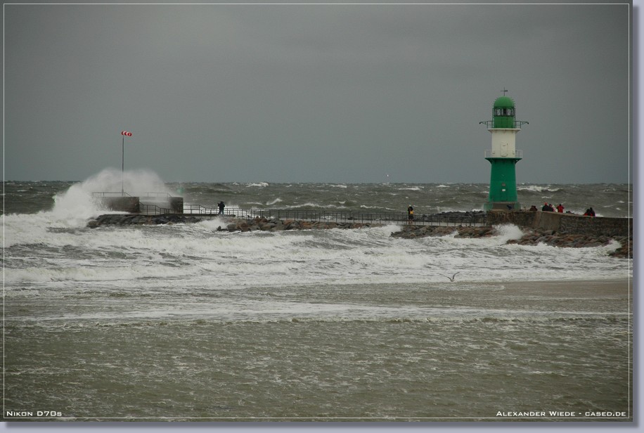Endlich wieder mal Sturm… Hallo, gestern Abend und in der heutigen Nacht zog das Sturmfeld vom Sturmtief "Britta" über die südliche Nordsee und die Deutsche Bucht hinweg. Es wurden dort bis zu 11 Windstärken und Spitzenböen (auf offener See) von bis zu 150 km/h gemessen. Am Vormittag des 01.11. erreichte das Sturmfeld die Mecklenburger Bucht und MV. Der Wind drehte von Süd-West auf Nord-Nord-West und erreichte in Rostock Warnemünde gegen 11 Uhr Vormittag sein Maximum. Es traten Böen von bis zu 100 km/h und Mittelwinde der Stärke 9 auf. Durch den permanenten, nördlichen Wind gab es ein mäßiges Hochwasser von ca. 1,5 m über normal. Das ist für dieses tidenfreie Gewässer schon nicht unerheblich. Mit dem Durchzug des Sturmfeldes erreichte Deutschland ein Schwung Kaltluft, polaren Ursprungs. Durch das noch relativ warme Ostseewasser (13 °C) in Verbindung mit der Höhenkaltluft (-40 °C bei 500 hPa in ca. 5,5 km Höhe) bildeten sich kräftige Schneeregen- und Graupelschauer. Die kalte Luft war jedoch sehr klar und die Wolken entwickelten eine tolle Stimmung, gerade während des Sonnenuntergangs. Ein Video dazu gibts bei meienm Chasing-Kollegen Enrico: http://www.stormchasing-blogger.blogspot.com/ |