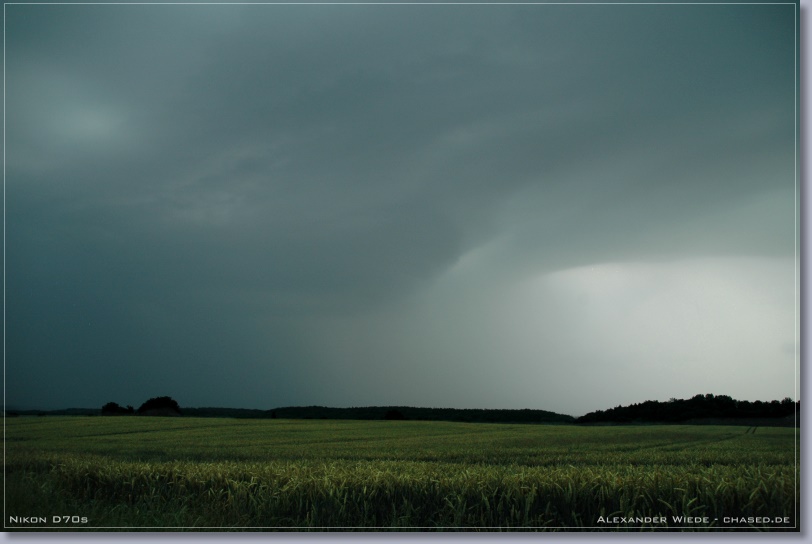 Die Bilder zeigen noch den Durchzug einer neu entwickelten Frontlinie. An deren nördlichem Ende entwickelte sich eine Zelle mit schön ausgeprägtem