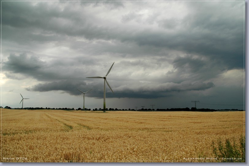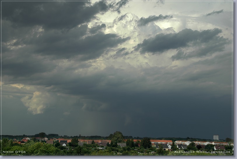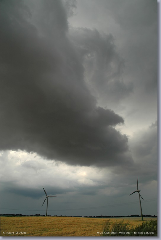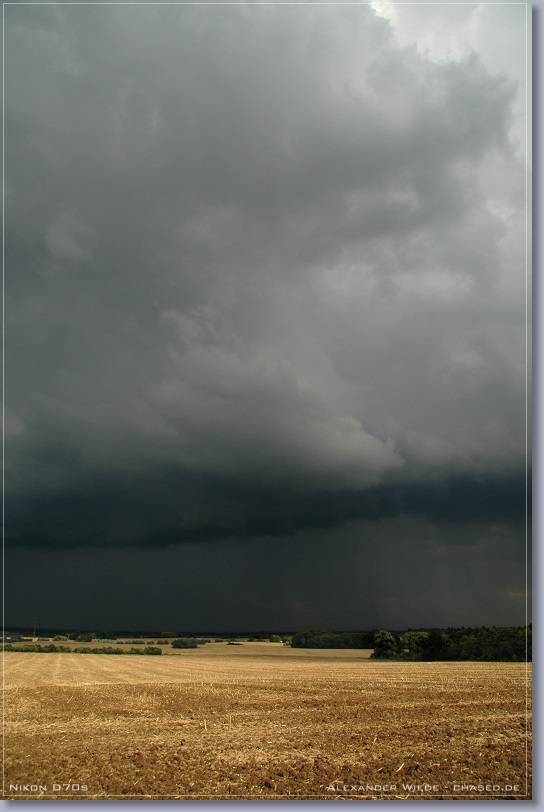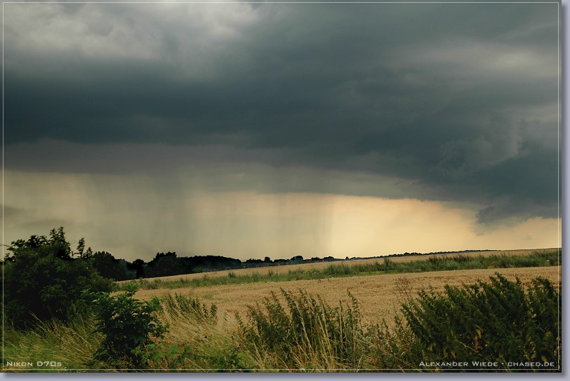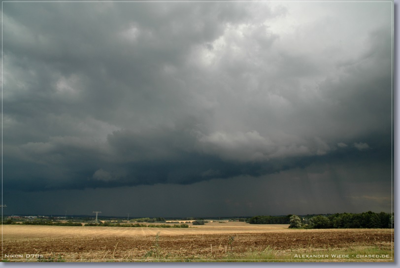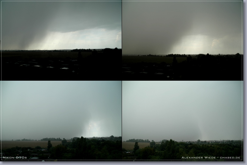 und dann ein extrem heftiger Downburst ein. Die Geschwindigkeit mit der der Niederschlagsvorhang entstand