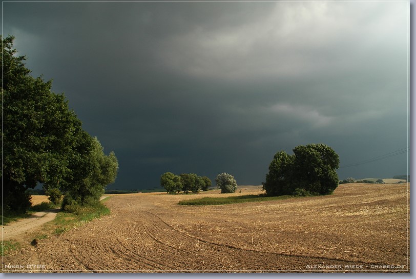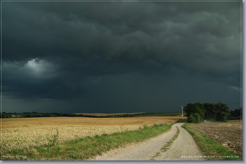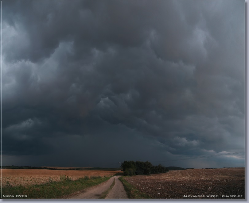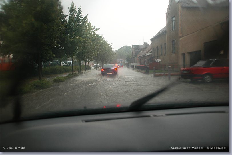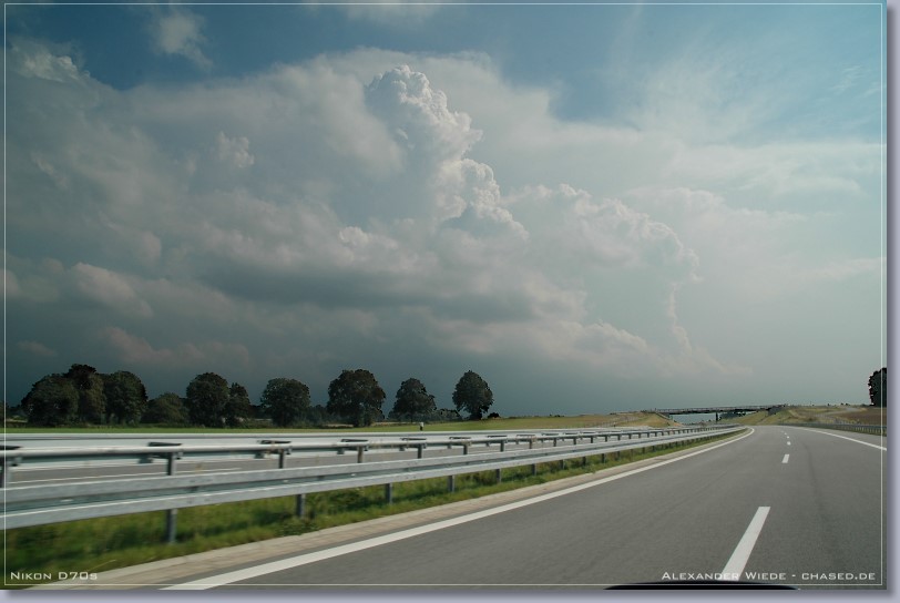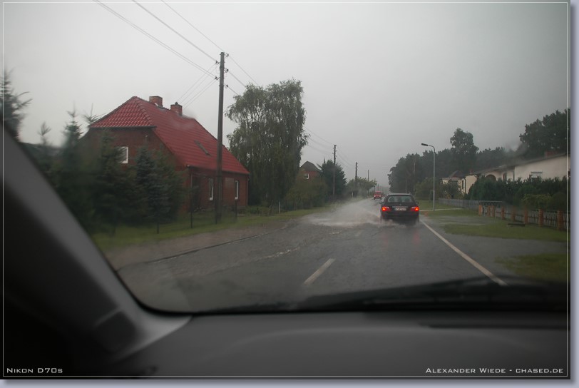 | Hallo, der heutige Tag war ein erstklassiger Wärmegewittertag - zumindest ab einer Entfernung von der Ostseeküste von 20 bis 30 km (Seewind). Ich wusste aus den Modelldaten, dass es im Verlaufe des heutigen Nachmittags zur Auslösung von relativ ortsfesten Gewittern kommen musste. So beobachtete ich also bis 14 Uhr gespannt den südlichen Himmel. Nachdem ich dann mal 10 Minuten nicht aus dem Fenster sehen konnte, bot sich mir ein heftiges Bild. Es hatten sich doch tatsächlich innerhalb dieser Zeit drei Zellen mit Eisschirm, ungefähr 50 km entfernt aufgebaut. Im Internet war davon natürlich noch nichts zu sehen, jedoch beschloss ich heute mal früher Schluss zu machen um los zu fahren (zum Glück kann ich das noch). Mit mir wäre so wieso nichts mehr losgewesen, da der Adrenalinspiegel beim Anblick der Zellen extrem stieg ;-). Ich fuhr dann also sofort von Wismar Richtung Schwerin los. Das erste Bild entstand auf der Autobahn ca. 10 km von den Zellen entfernt. Inzwischen hatte sich das System zu einem komplexen Cluster ausgeweitet. Die Bilder die ich davor machen konnte, wurden leider nichts da es viel zu diesig war. Ich suchte mir östlich des Schweriner Sees einen schönen Beobachtungsstandpunkt und ließ die Sache auf mich zukommen… Nachdem heftige Sturmböen einsetzten und der Platzregen losging fuhr ich Richtung Osten um aus dem Niederschlag rauszukommen. Jedoch hielt mich eine Baustelle in Sternberg für eine halbe Stunde auf, was natürlich die totale Katastrophe für mich war. In dieser zeit Goss es permanent und die Straßen wurden langsam zu Flüssen. Endlich konnte ich Richtung Bützow weiterfahren und kam auch aus dem Schlimmsten raus. Richtung Nordost sah der Himmel vielversprechend aus - es gab reichlich Erdblitze. Dieser neue Kern baute sich weiter nach Süden hin aus, so dass ich kurz vor Bützow wieder in heftigen Niederschlag fuhr. Dabei habe ich knapp den Bereich der heftigsten Fallböen verpasst - auf der Straße lagen größere Äste - ich fuhr Slalom. Bei der Fahrt durch Bützow hatte ich Angst um mein Auto, da ich durch teilweise 30 cm tiefes Wasser fahren musste. Zum Glück ging alles gut. Es war sinnlos weiter Richtung Osten zu fahren, da ich nicht wusste wie das ganze System aussieht und zieht. So fuhr ich dann also Richtung A20 nach Norden. Es ging nur mit max. 30 km/h voran - soviel Regen hab ich selten erlebt… Leider gibt es keine Wetterstation in dem eng begrenzten Bereich in dem die heftigsten Niederschläge runtergingen. Ich schätze es waren um 60 mm in 2 h. Radarfilm ganz unten... Gruß Alex |