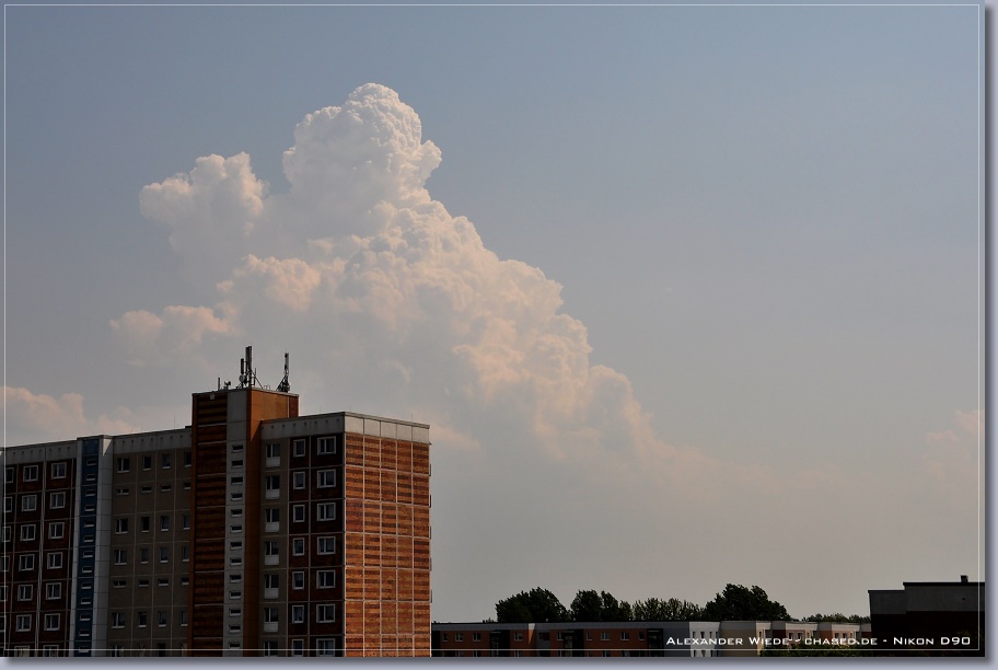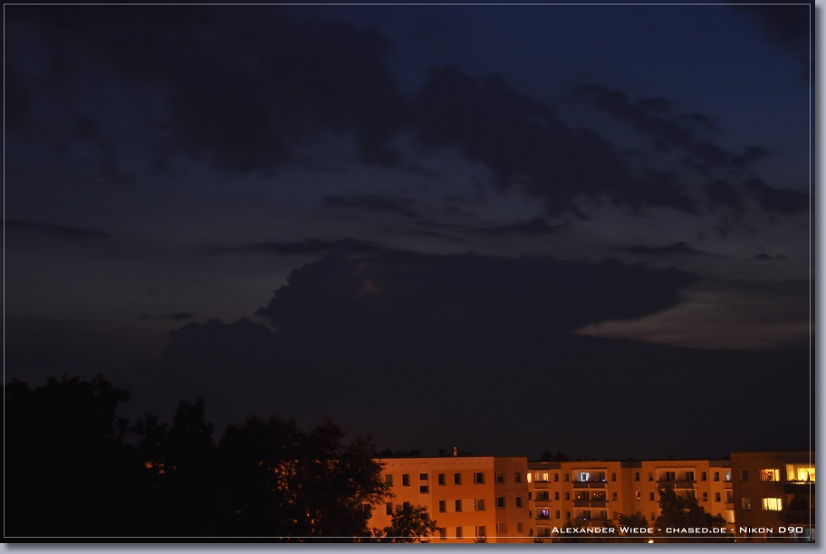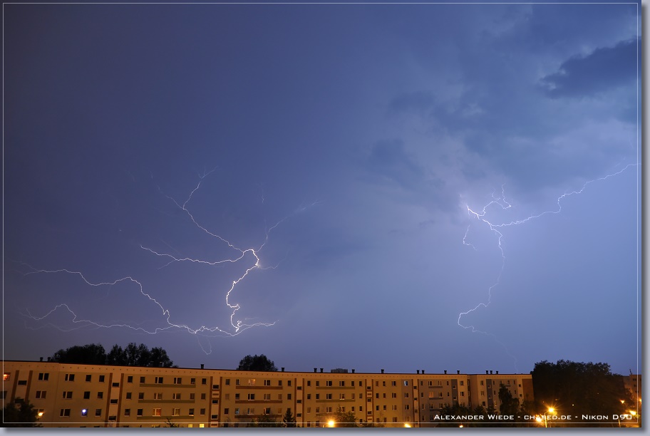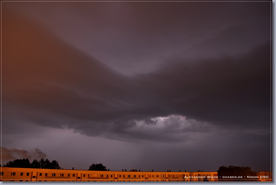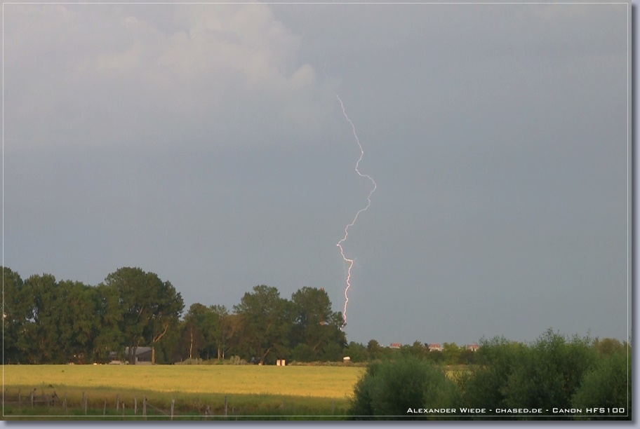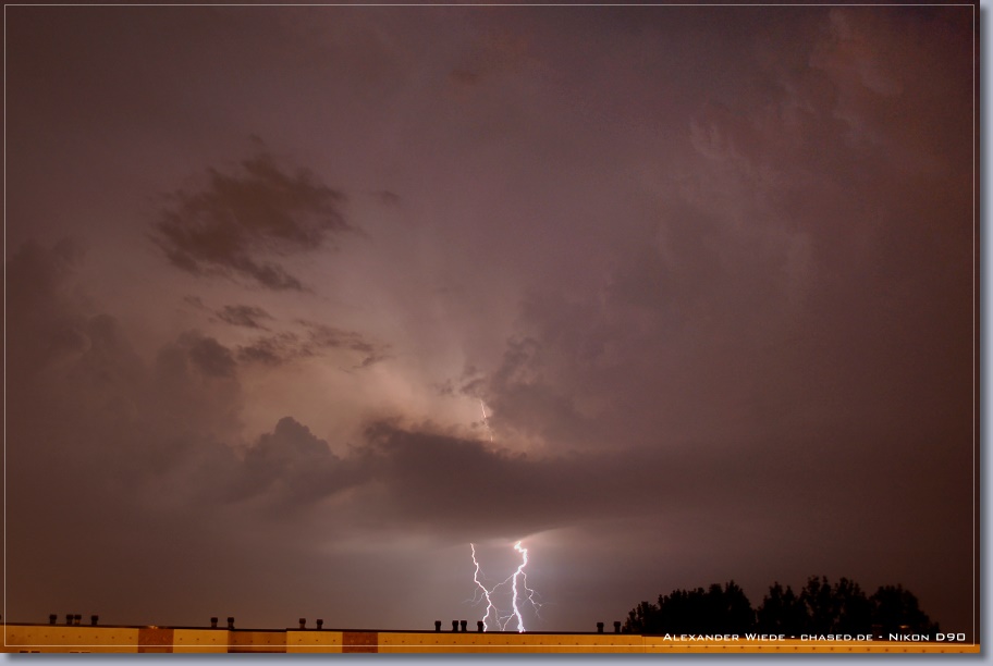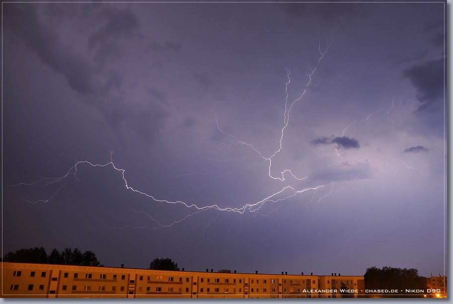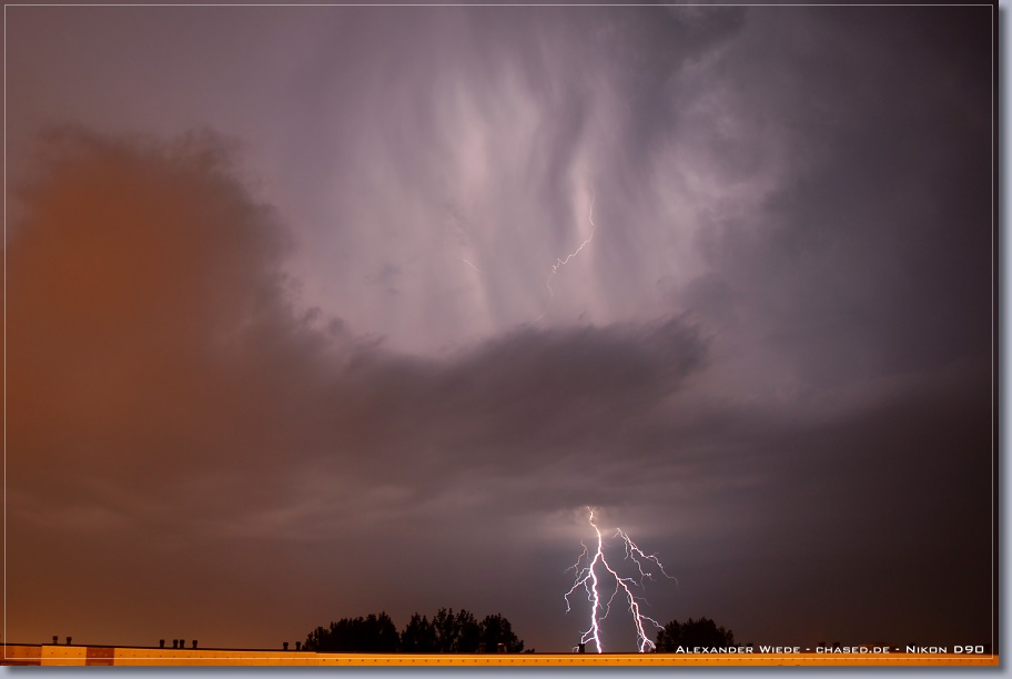 | Hallo, nach nun zwei Jahren wird es endlich mal wieder Zeit für einen neuen Bericht auf chased.de. In der Nacht zum 14. Juli gegen 2:00 Uhr erreichte Rostock ein Gewittercluster, der sich am Vorabend in der Mitte Deutschlands gebildet hatte. Zu meinem Glück versterkte sich eine frische, eingelagerte Zelle südlich vor Rostock, so dass ich folgende Aufnahmen machen konnte. Die beiden ersten Bilder entstanden am 11.07. - An diesem Tag gab es einige kurzlebige Zellen. Der Schwerpunkt der Gewitteraktivitäten spielte sich jedoch weiter westlich ab... Gruß Alex |