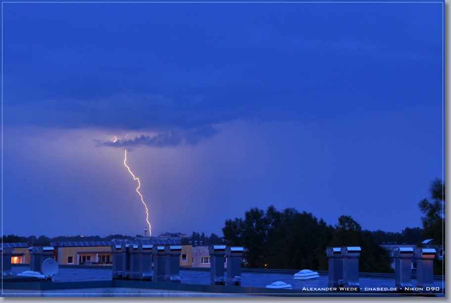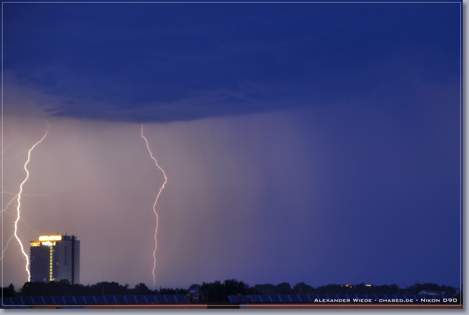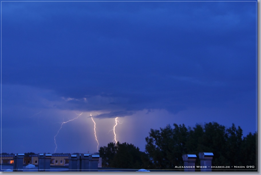 | Hallo, vom 05.06. bis zum 07.06.2011 gab es eine herliche Gewitterlage über Deutschland. Insbesondere der Nordosten bekam an diesen drei Tagen jede Menge Regen ab. So fielen z.B. vom 05.06. bis zum 06.06. in Kühlungsborn 80 mm und in Rostock immerhin über 30 mm Niederschlag. Die folgenden Bilder zeigen einen Zusammenschnitt der drei Tage. Von einer heranziehenden Gewitterlinie habe ich hier eine Zeitrafferaufnahme erstellt: Wolkenzeitraffer Gruß Alex |