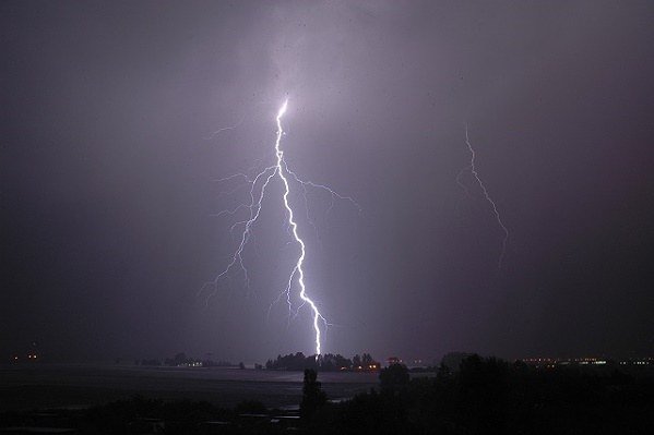 Bei sehr dichten Blitzen und bei viel Niederschlag können durch den Einsatz eines Polfilters Überblendungen etwas verringert werden. Beispiele für Blenden- und Belichtungseinstellungen: Zu hohe Blende (F6,3); zu kurze Belichtungszeit (4 s) (aufgenommen bei Dämmerung, Entfernung ca. 15 km)