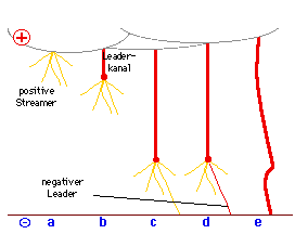 | Gefahren Allgemeine Verhaltensmassregeln bei Herannahen eines Gewitters: möglichst einen mit Blitzableitern geschützten Raum oder einen Faraday´schen Käfig (geschlossenes Metallgehäuse z.B. Auto) aufsuchen. möglichst Erhebungen meiden, sich möglichst klein machen, von exponierten Punkten (Bäume, Stangen, ...) Abstand halten, Die Verletzungen (Schäden) durch Blitzschlag werden meist durch folgende Effekte ausgelöst: Direkter Blitzeinschlag Der Blitzstrom fliesst ganz oder teilweise durch die Person oder das Objekt. Übrigens: Nur ca. 30% der vom Blitz getroffenen Personen sterben. Folgen eines Blitzschlages sind meist Herzkammerflimmern, innere und äußere Verbrennungen und Verletzungen durch Stürze etc. Wichtig im Falle eines Blitztreffers: Erste Hilfe ist lebensrettend! Überspringender Strom Selbst wenn der Blitz in einen Ableiter oder in einen Baum eingeschlagen hat, kann eine in unmittelbarer Nähe stehende Person gefährdet sein. Der Blitzstrom kann die kurze Strecke zwischen Ableiter und Person überbrücken und (zusätzlich) teilweise über die Person abfließen. Deshalb sollte man von "potentiellen Blitzableitern" einen Mindestabstand von 3 Metern halten. Schrittspannung: Durch den über den Erdwiderstand fließenden Strom kann es zu einen Spannungsabfall an einer Person kommen, die in einiger Entfernung vom Blitzeinschlag steht. Die Spannung ist umso größer, je weiter die Person die Füße gespreizt hat. Deshalb sollte man die Füße bei Gewittern möglichst immer geschlossen halten und sich nicht hinlegen. h |